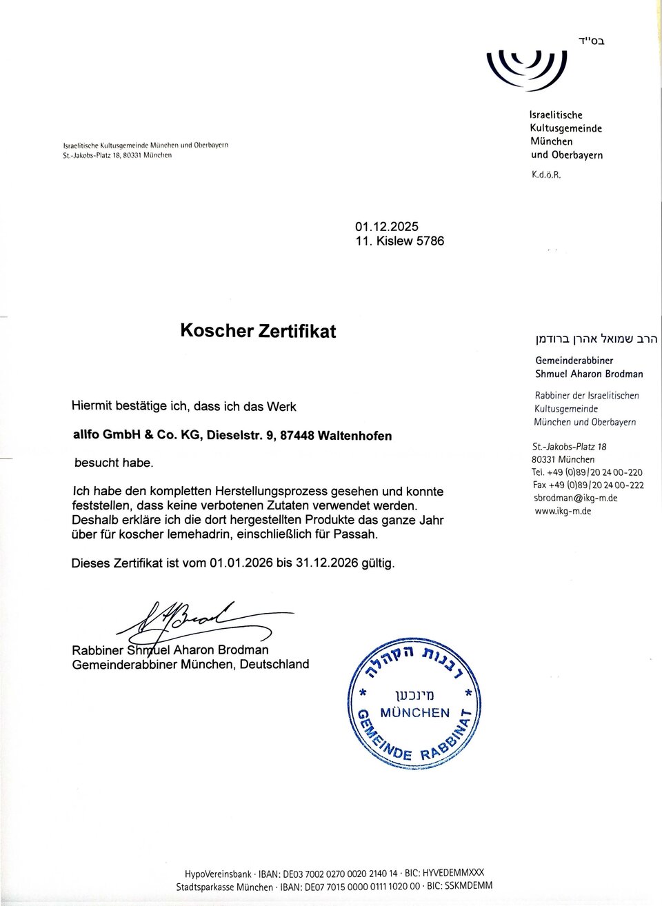 Zertifikate belegen die Qualität der Produktion bei allfo